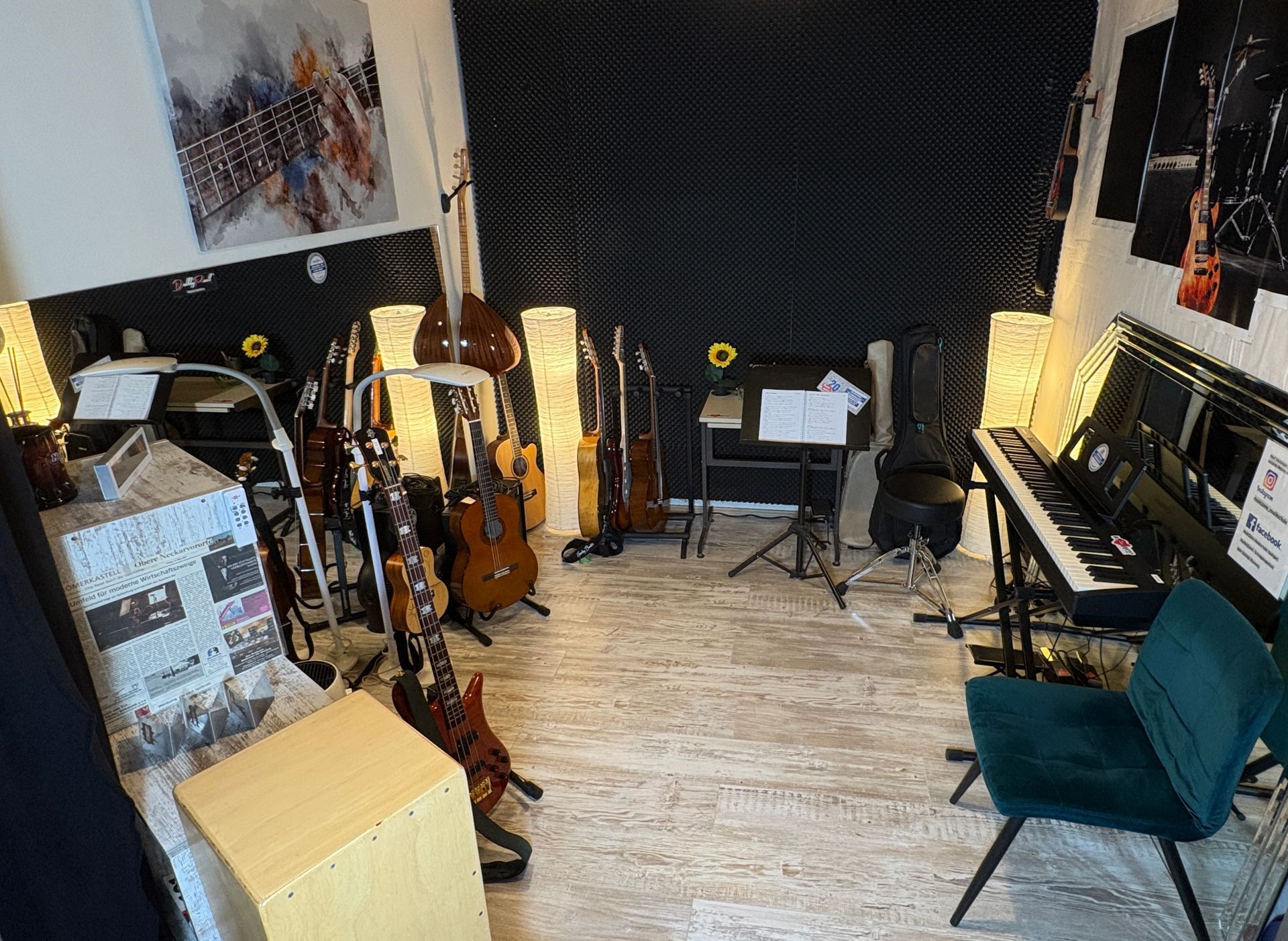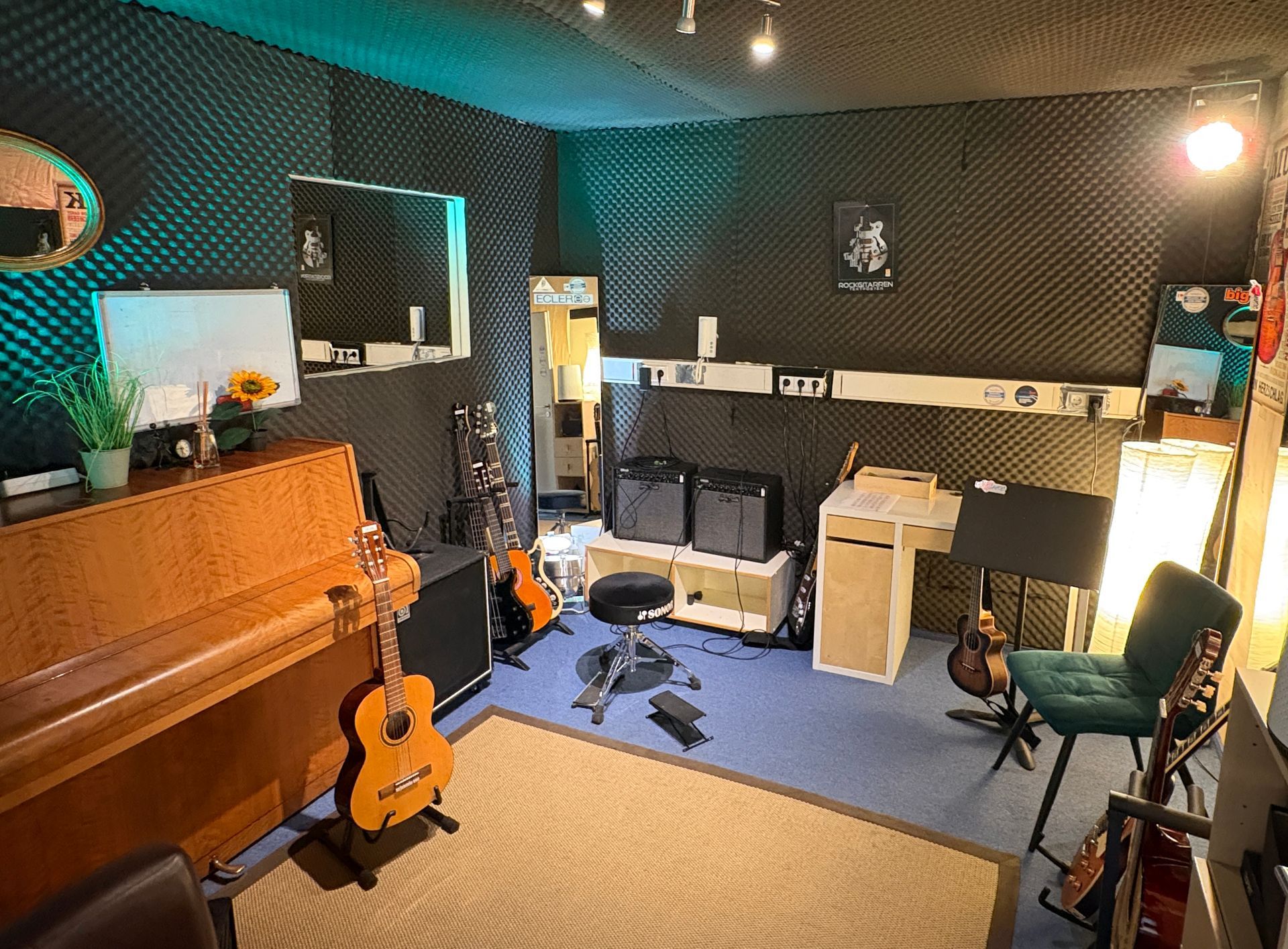 Unsere Räume sind sauber, trocken und mit einwandfreiem Equipment ausgestattet. Jeder Raum wurde gemütlich gestaltet und wir achten darauf, dass unsere Räume - auch wenn sie im UG sind - eine angenehme Atmosphäre zum Musizieren / Unterrichten bieten. Unsere Räume können zudem außerhalb der Unterrichtszeiten von Musikern zum Üben angemietet werden. Bei Interesse, könnt Ihr Euch gerne per eMail bei uns melden.